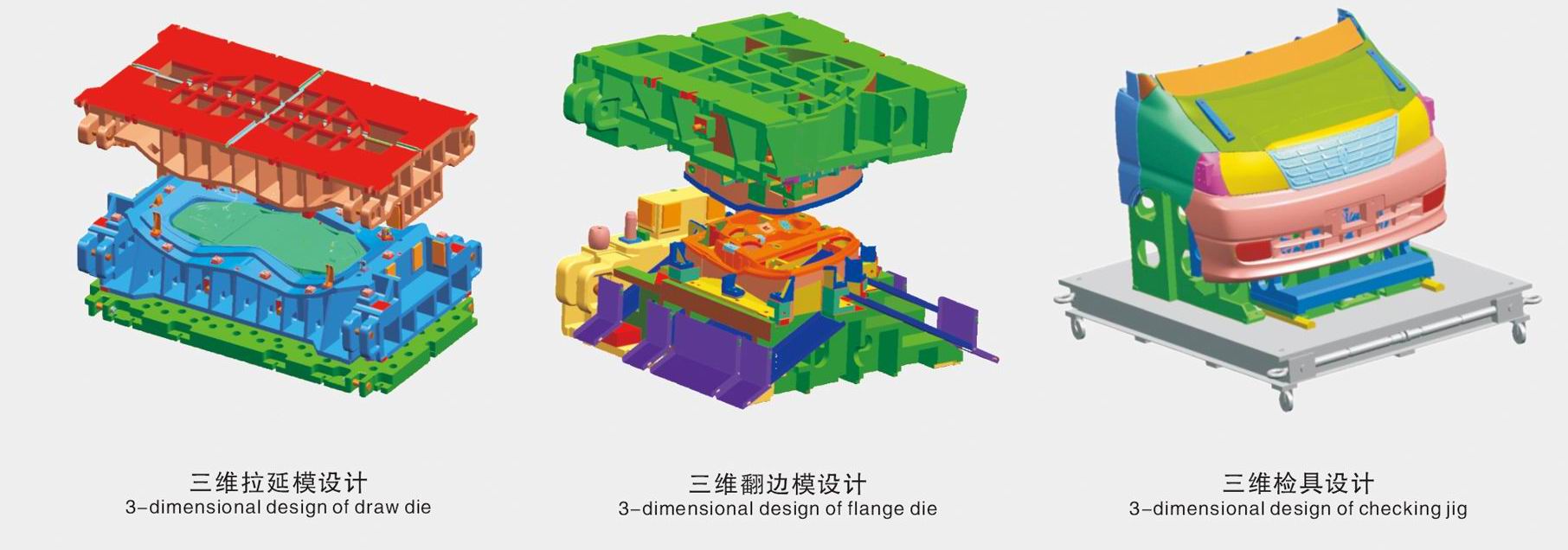 三维设计,应用CAE技术对复杂冲压过程进行计算机仿真模拟,从而提高模具设计的水平。早在九十年代中期,我们就全面采用了CAM技术加工模具型面,通过网络系统直接传